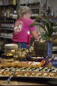 brysselkål, såser, fröknäcke, tunnbröd, ostar, smör och ett härligt gottebord.